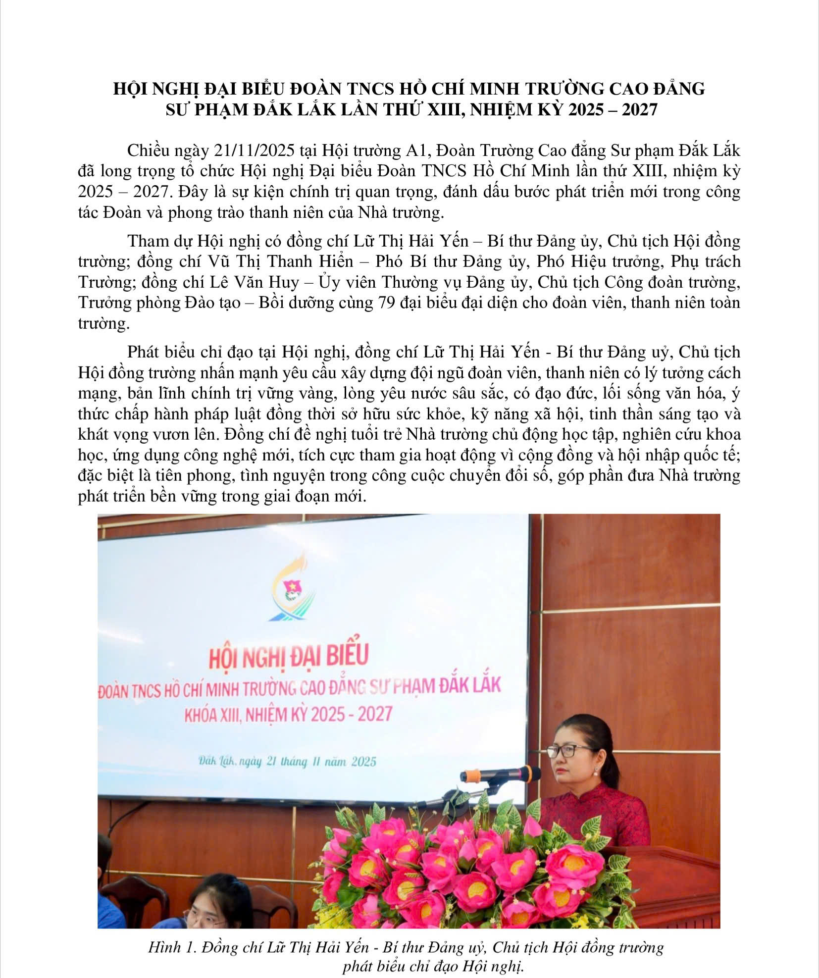 Hội nghị Đại biểu Đoàn Thanh niên Cộng Sản Hồ Chí Minh trường Cao đẳng Sư phạm Đắk Lắk lần thứ XIII, nhiệm kỳ 2025 – 2027