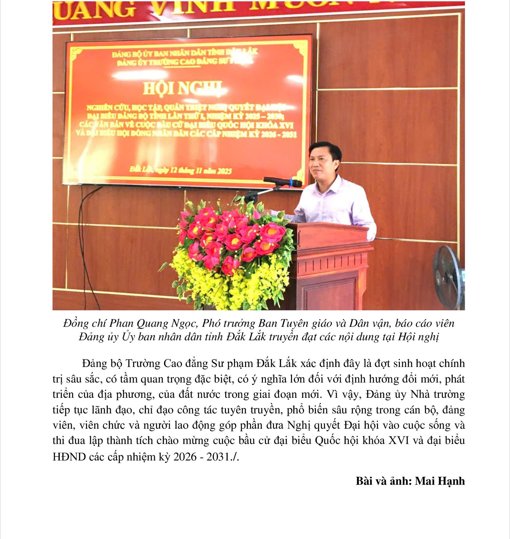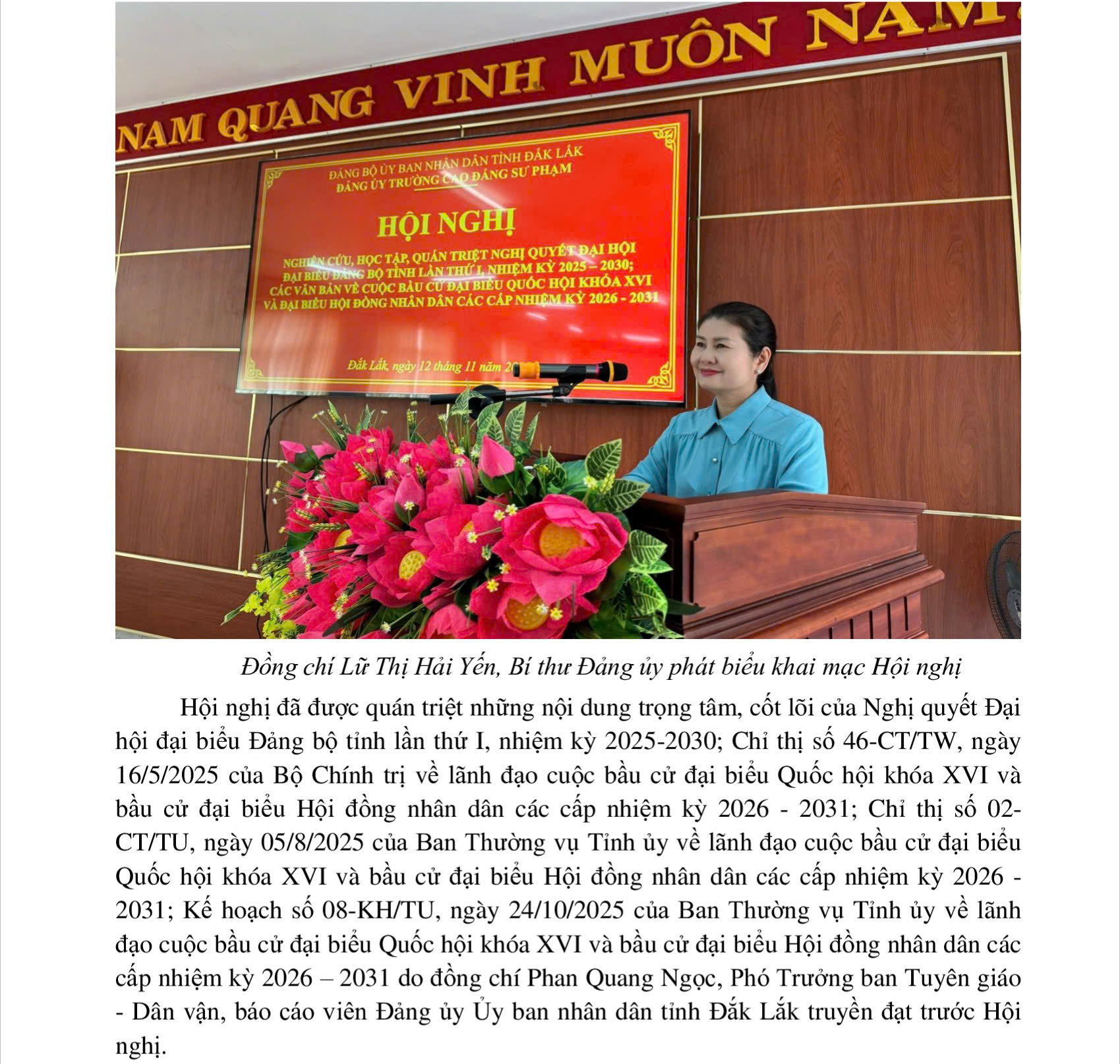 Hội nghị nghiên cứu, học tập, quán triệt Nghị quyết Đại hội đại biểu Đảng bộ tỉnh lần thứ I, nhiệm kỳ 2025 - 2030; các văn bản về cuộc bầu cử đại biểu Quốc hội khóa XVI và bầu cử đại biểu Hội đồng nhân dân các cấp nhiệm kỳ 2026 - 2031