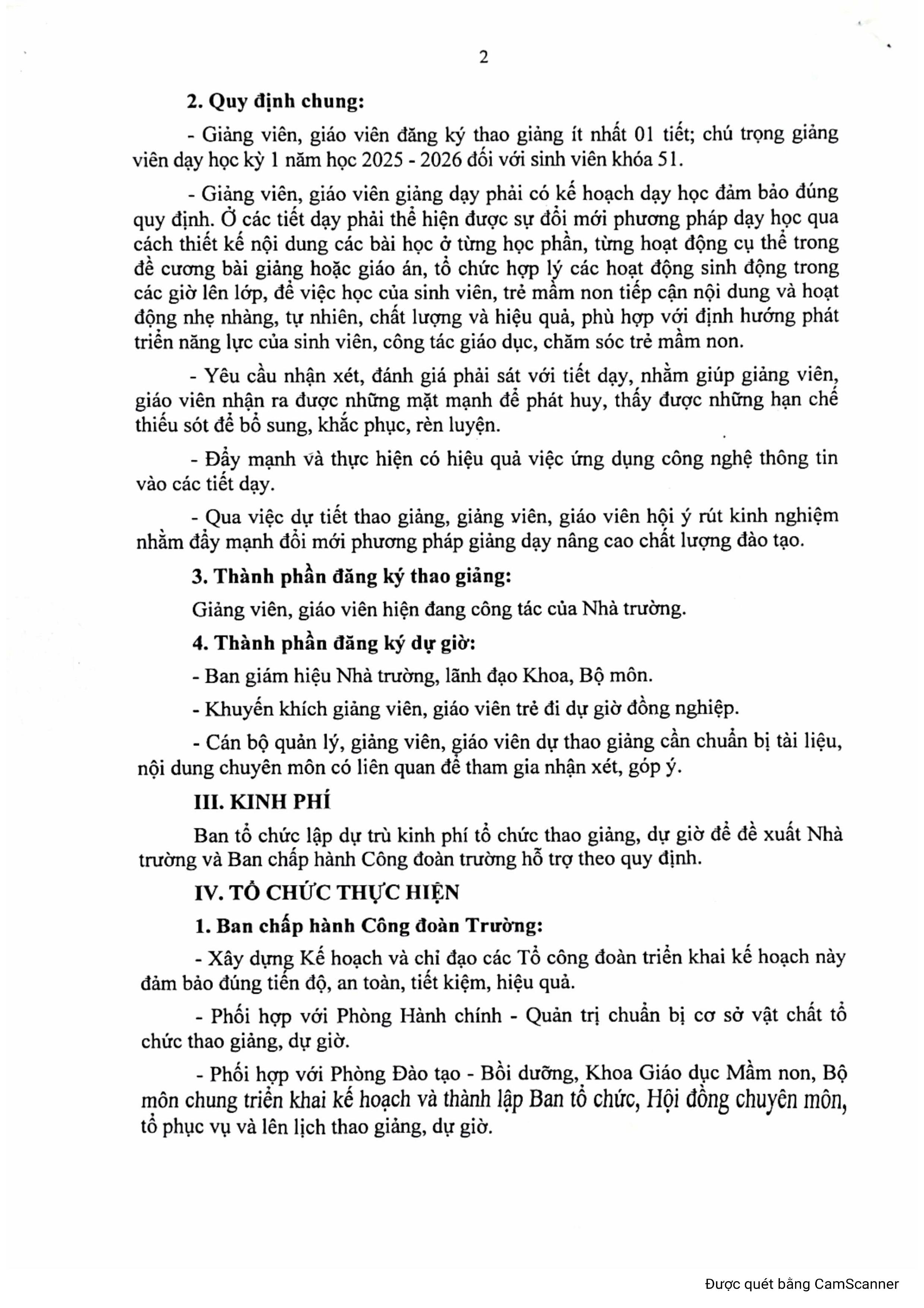 Kế hoạch phối hợp tổ chức thao giảng, dự giờ năm học 2025 - 2026