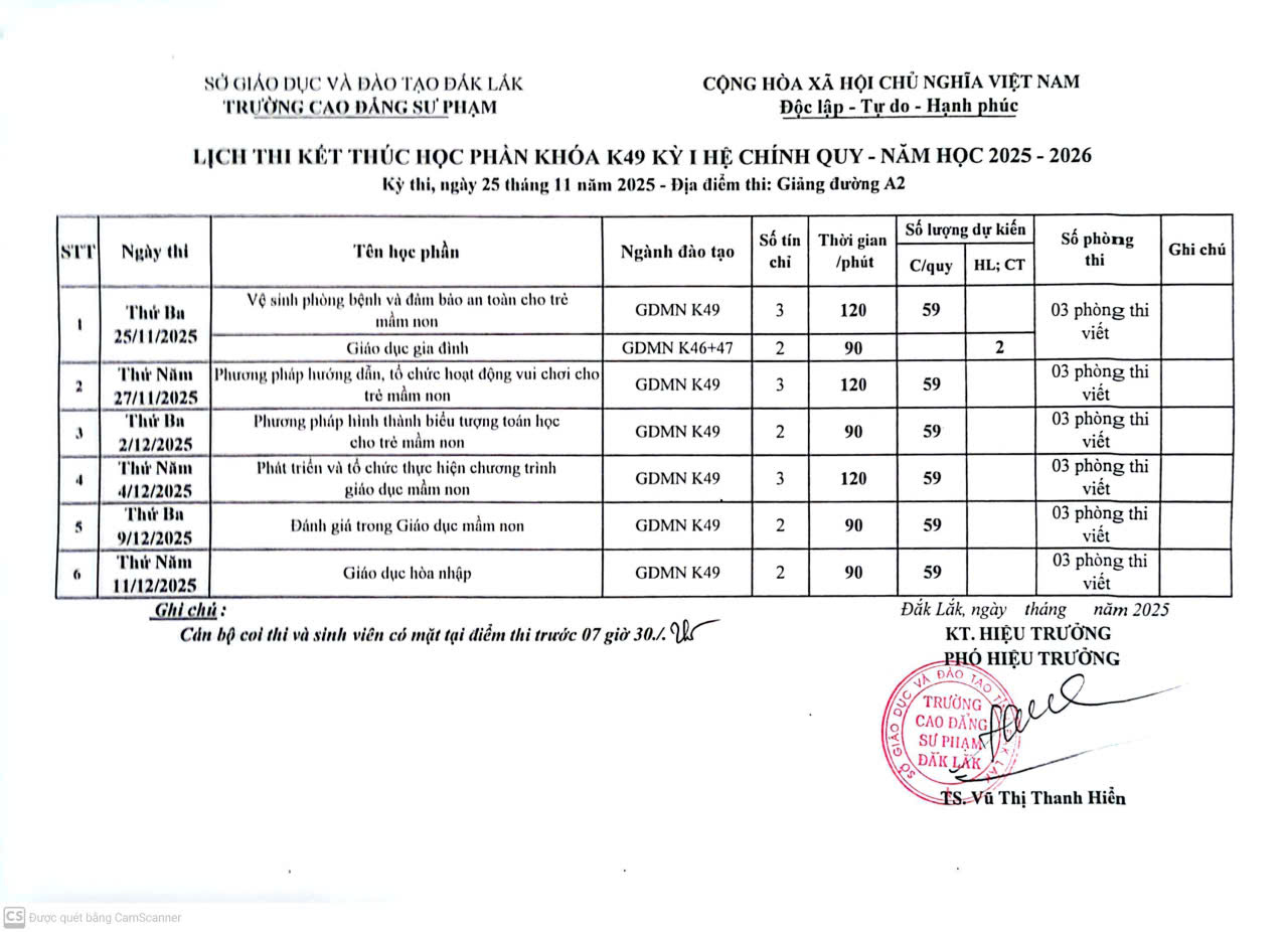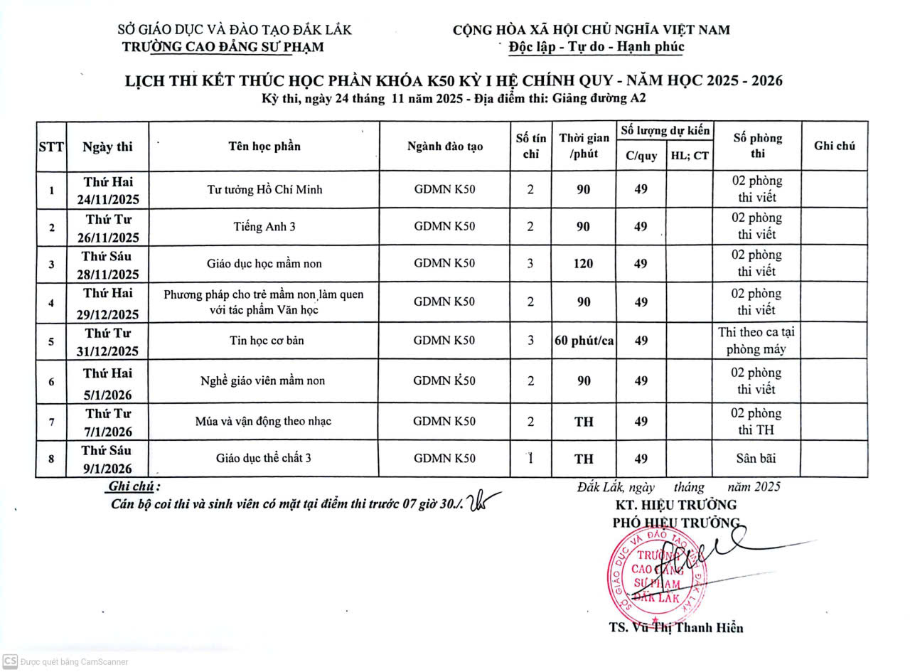 Lịch thi kết thúc học phần khóa 49, 50 kỳ I hệ chính quy năm học 2025 - 2026 (áp dụng từ ngày 24 - 25/11/2025)