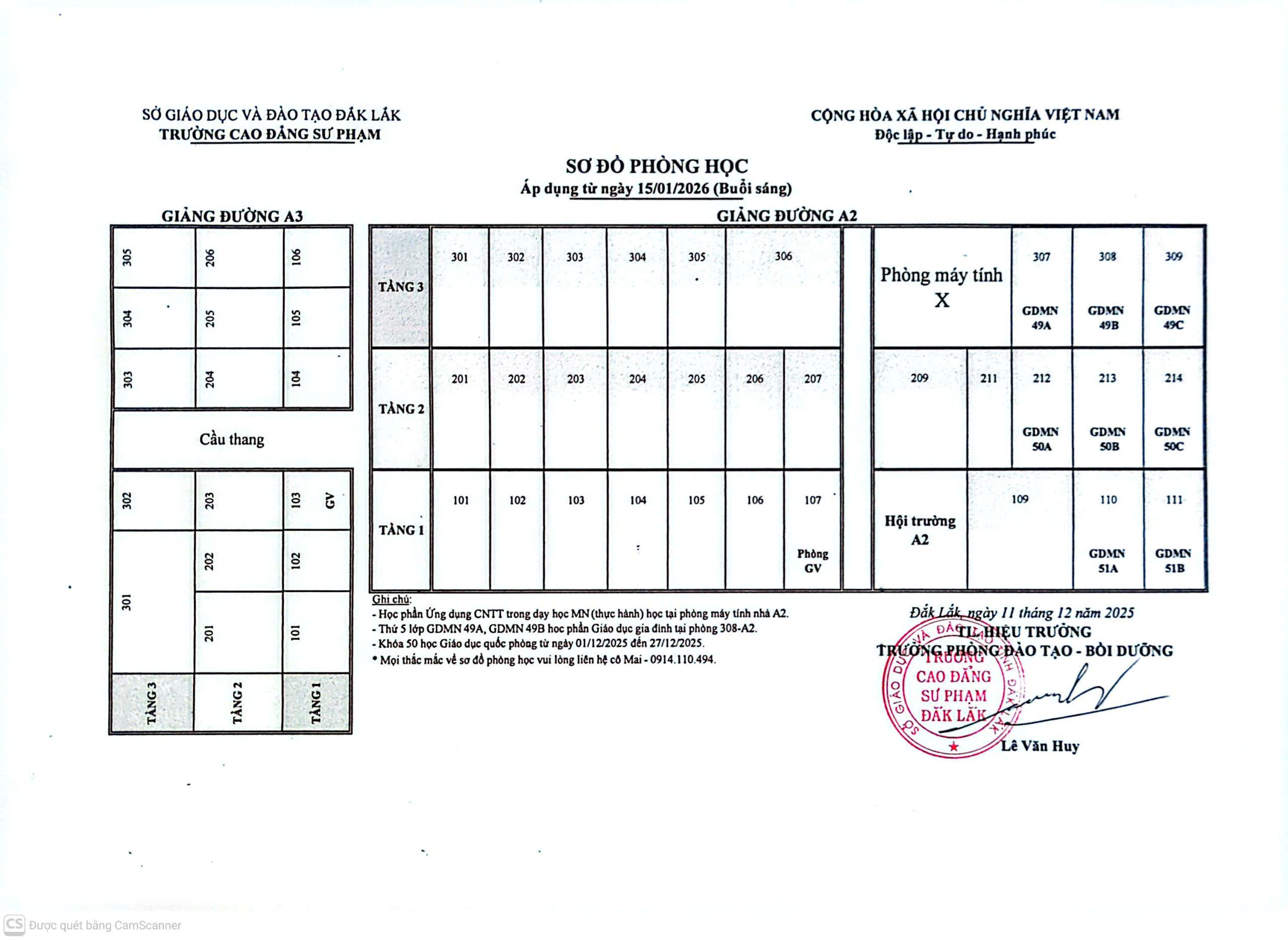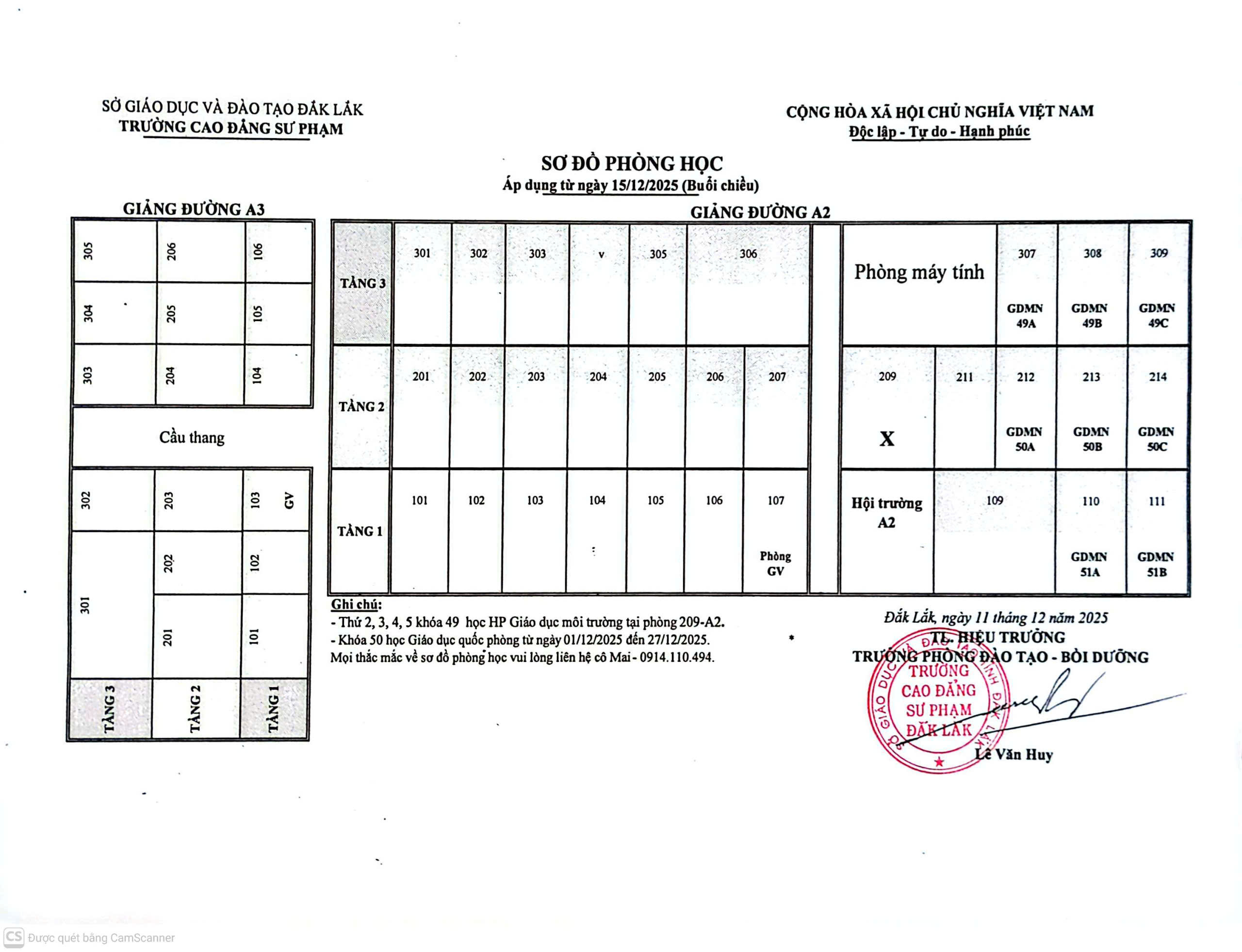 Sơ đồ phòng học (áp dụng từ ngày 15/12/2025)