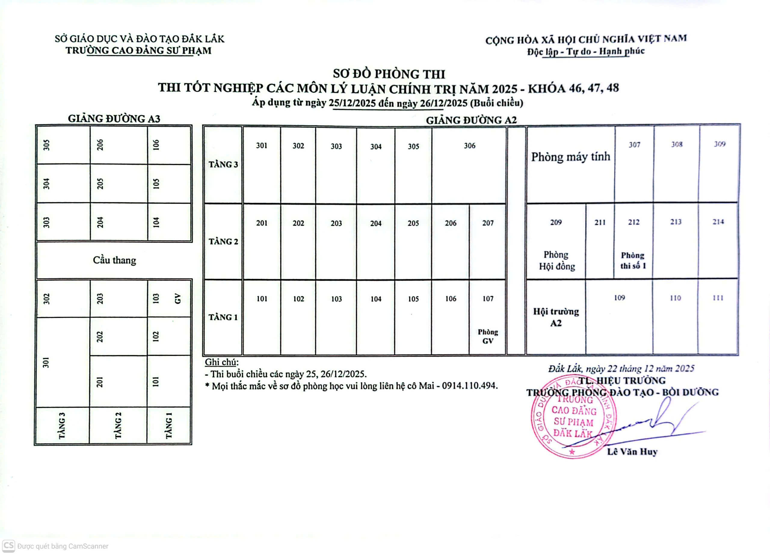 Sơ đồ phòng thi tốt nghiệp các môn Lý luận chính trị năm 2025 - khóa 46, 47, 48 (áp dụng từ ngày 25, 26/12/2025)