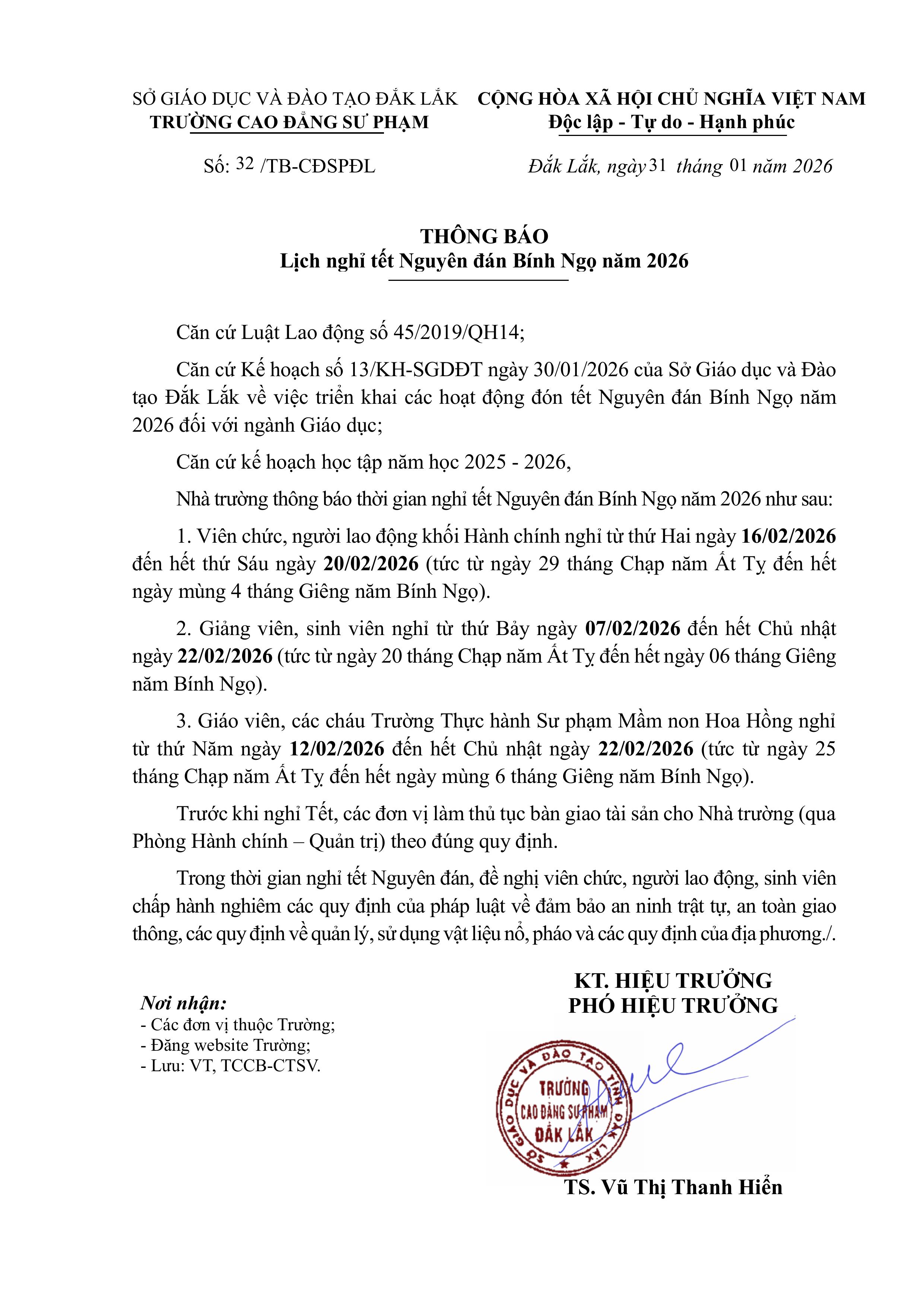 Thông báo lịch nghỉ tết Nguyên đán Bính Ngọ năm 2026