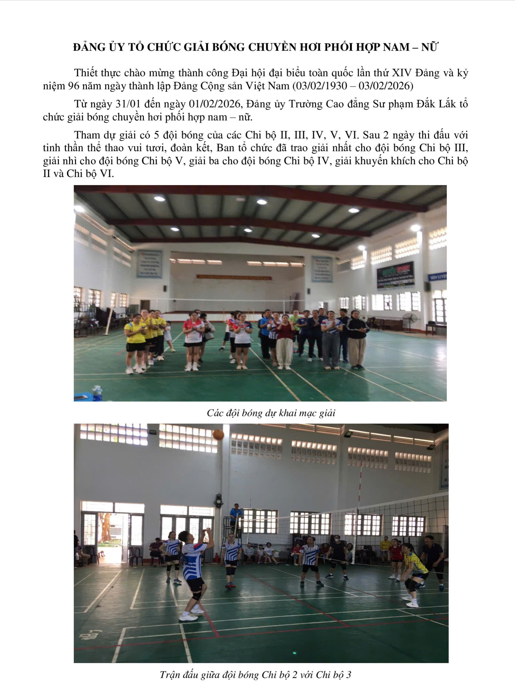 Đảng ủy tổ chức giải bóng chuyền hơi phối hợp nam - nữ