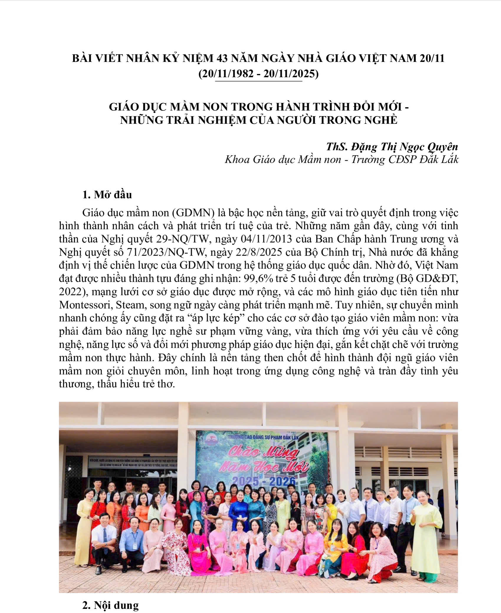 Giáo dục Mầm non trong hành trình đổi mới ,những trải nghiệm của người trong nghề