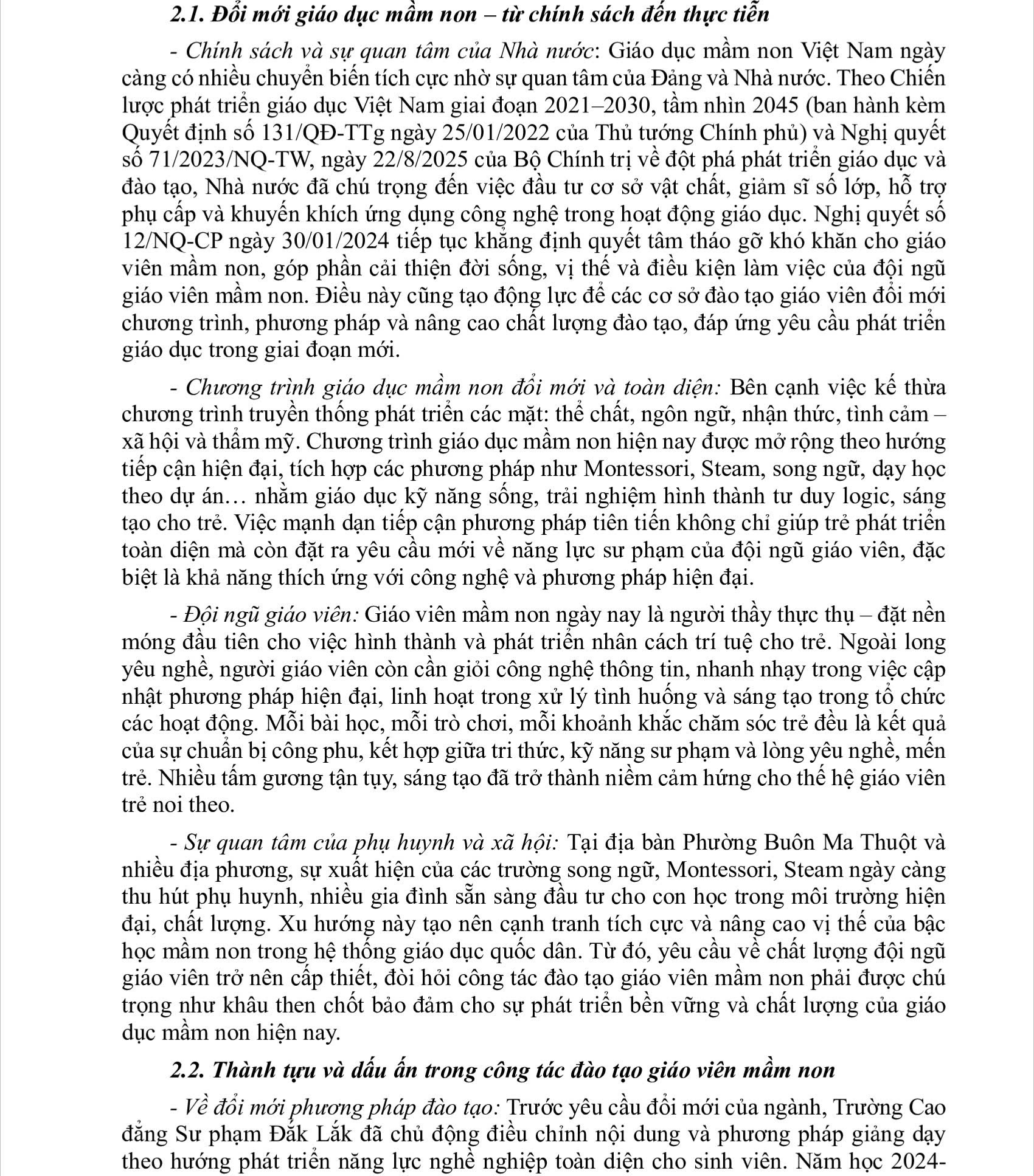 Thông báo về việc báo cáo kết quả thực hiện Kế hoạch số 27/KH-CĐSPĐL ngày 28/8/2025 của trường Cao đẳng Sư phạm Đắk Lắk