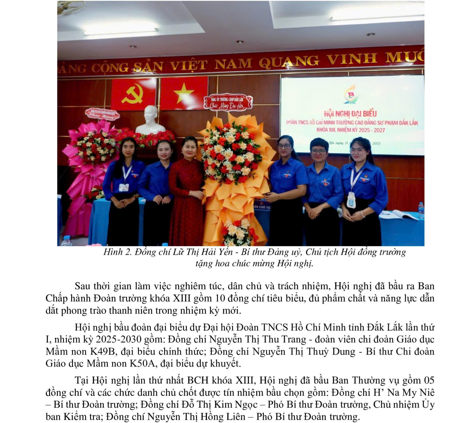 Hội nghị Đại biểu Đoàn Thanh niên Cộng Sản Hồ Chí Minh trường Cao đẳng Sư phạm Đắk Lắk lần thứ XIII, nhiệm kỳ 2025 – 2027
