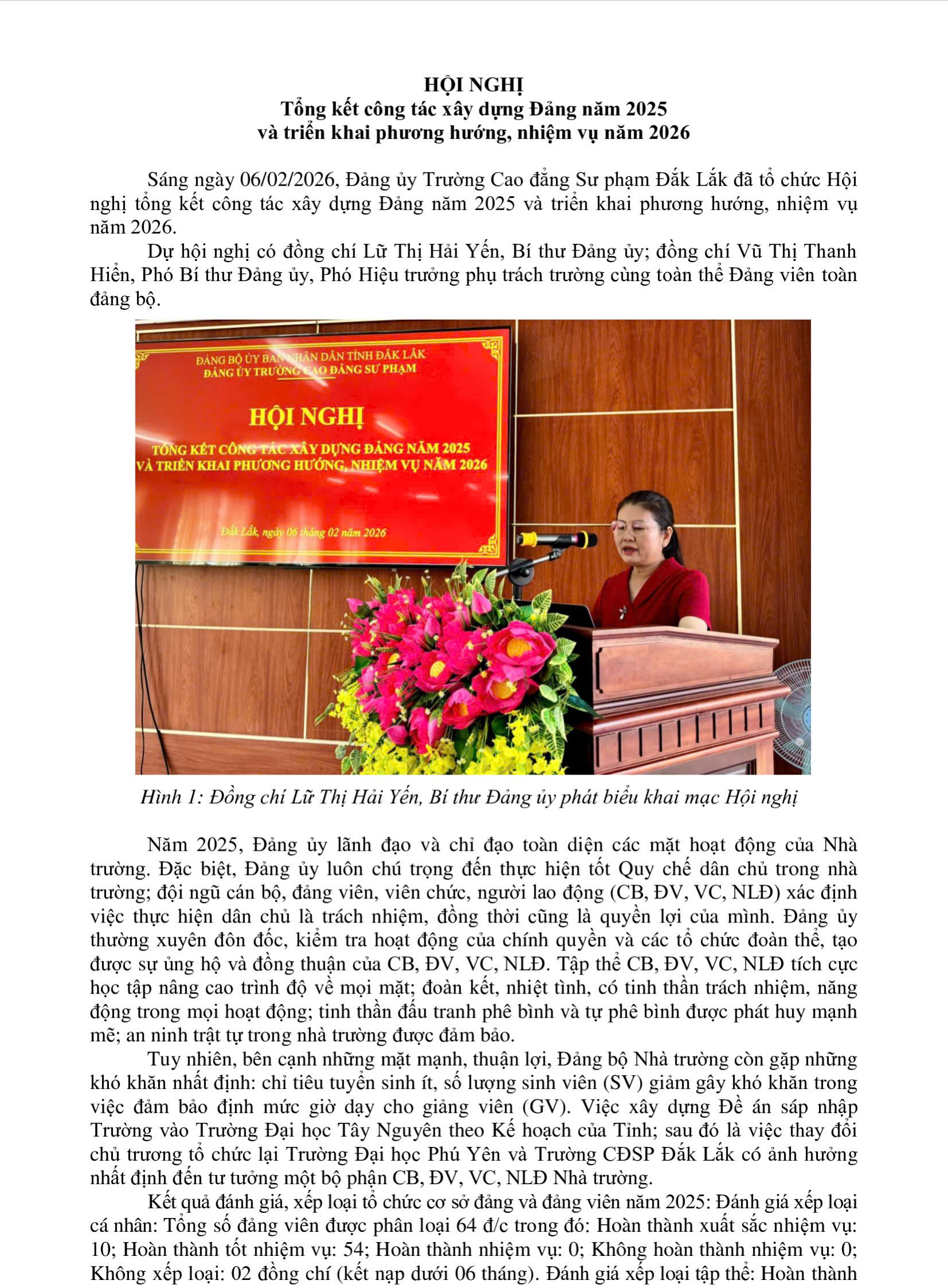 Hội nghị tổng kết công tác xây dựng Đảng năm 2025 và triển khai phương hướng, nhiệm vụ năm 2026