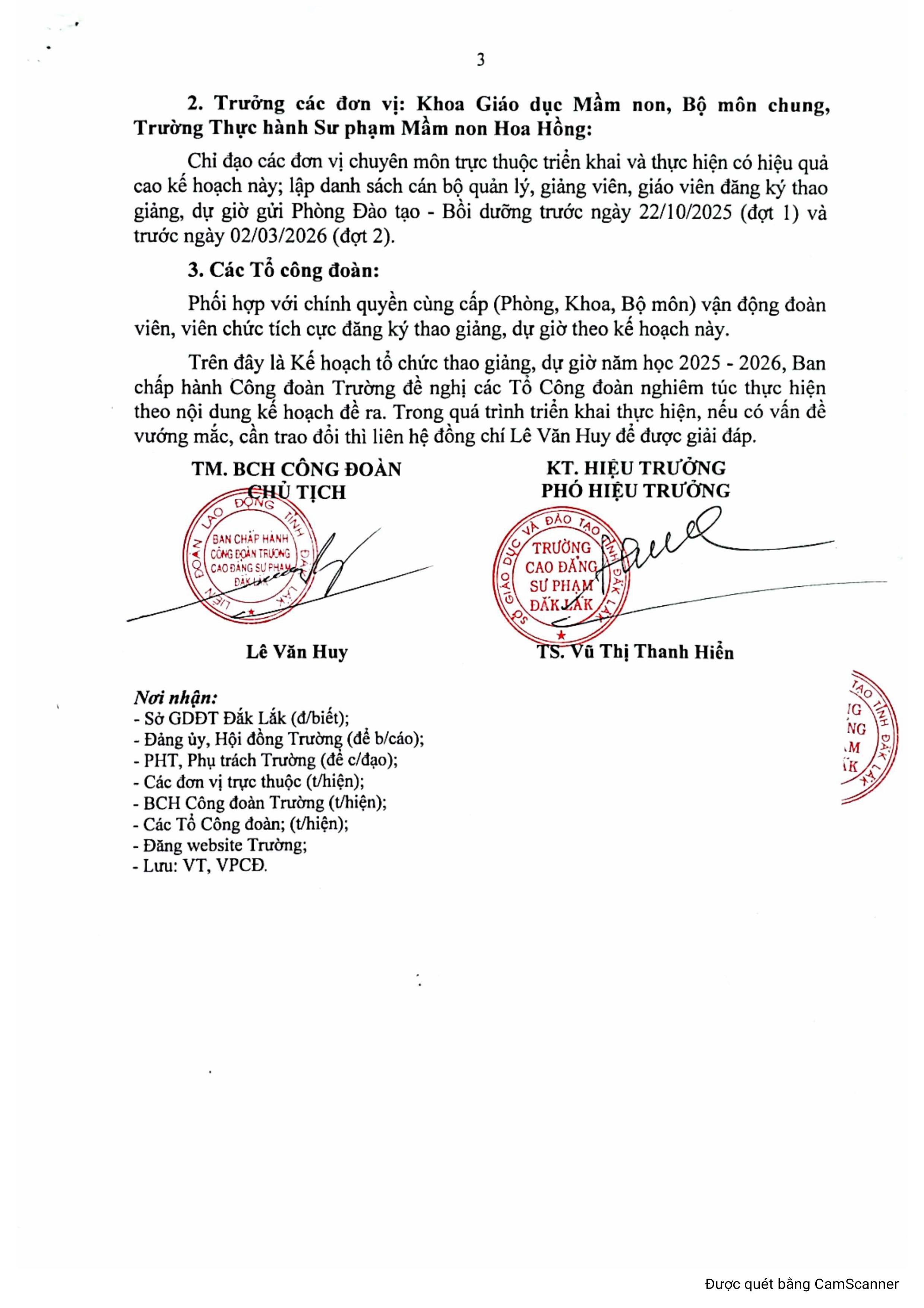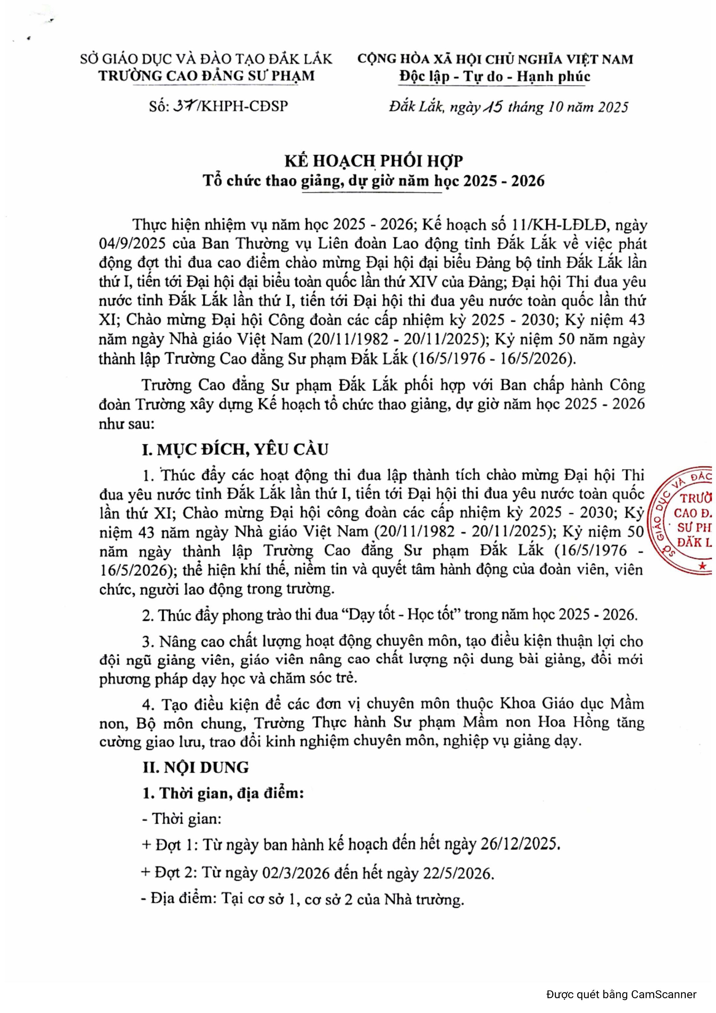 Kế hoạch phối hợp tổ chức thao giảng, dự giờ năm học 2025 - 2026