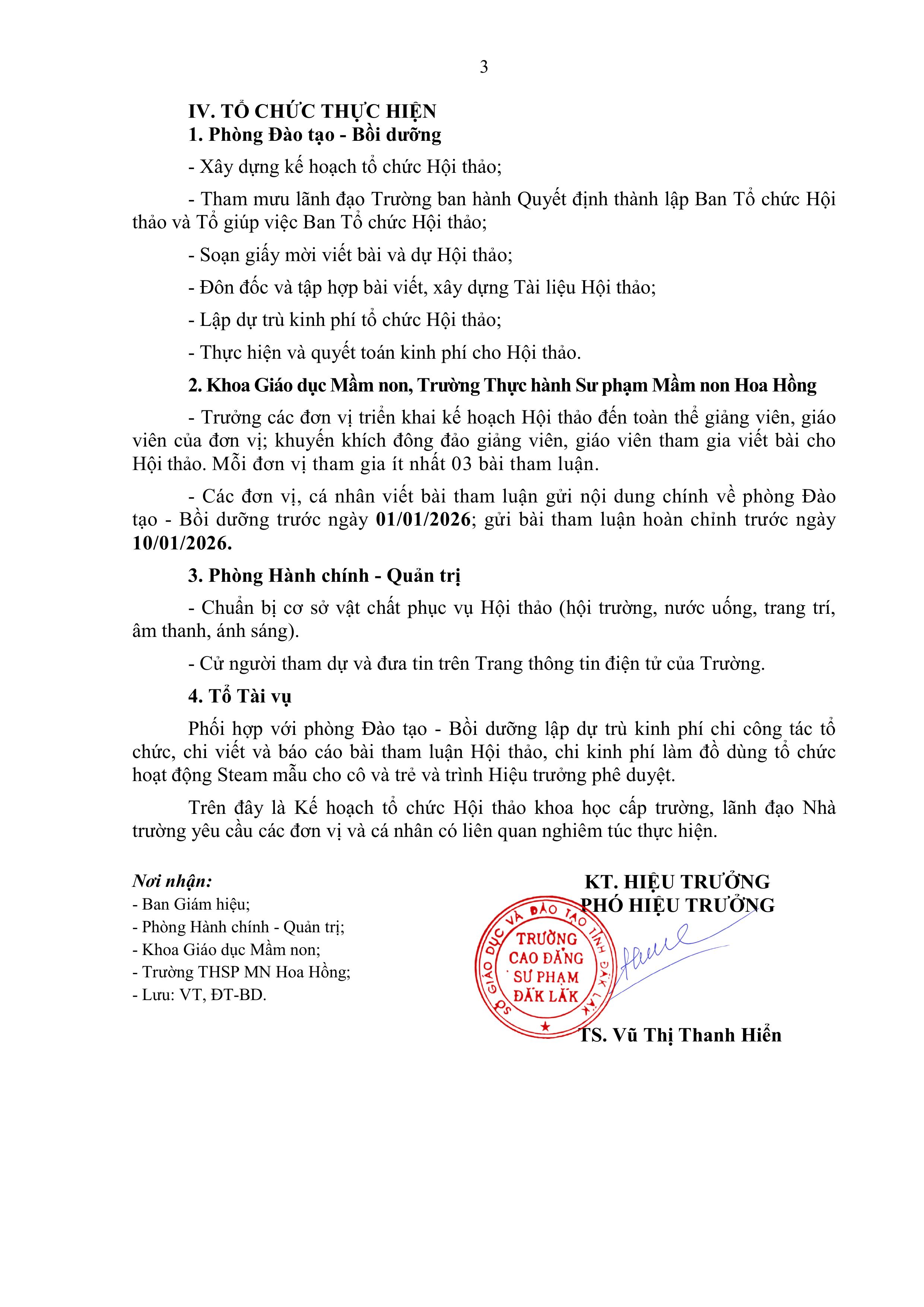 Kế hoạch tổ chức Hội thảo khoa học cấp trường ứng dụng hiệu quả phương pháp Giáo dục STEAM trong Giáo dục Mầm non tại trường Cao đẳng Sư phạm Đắk Lắk