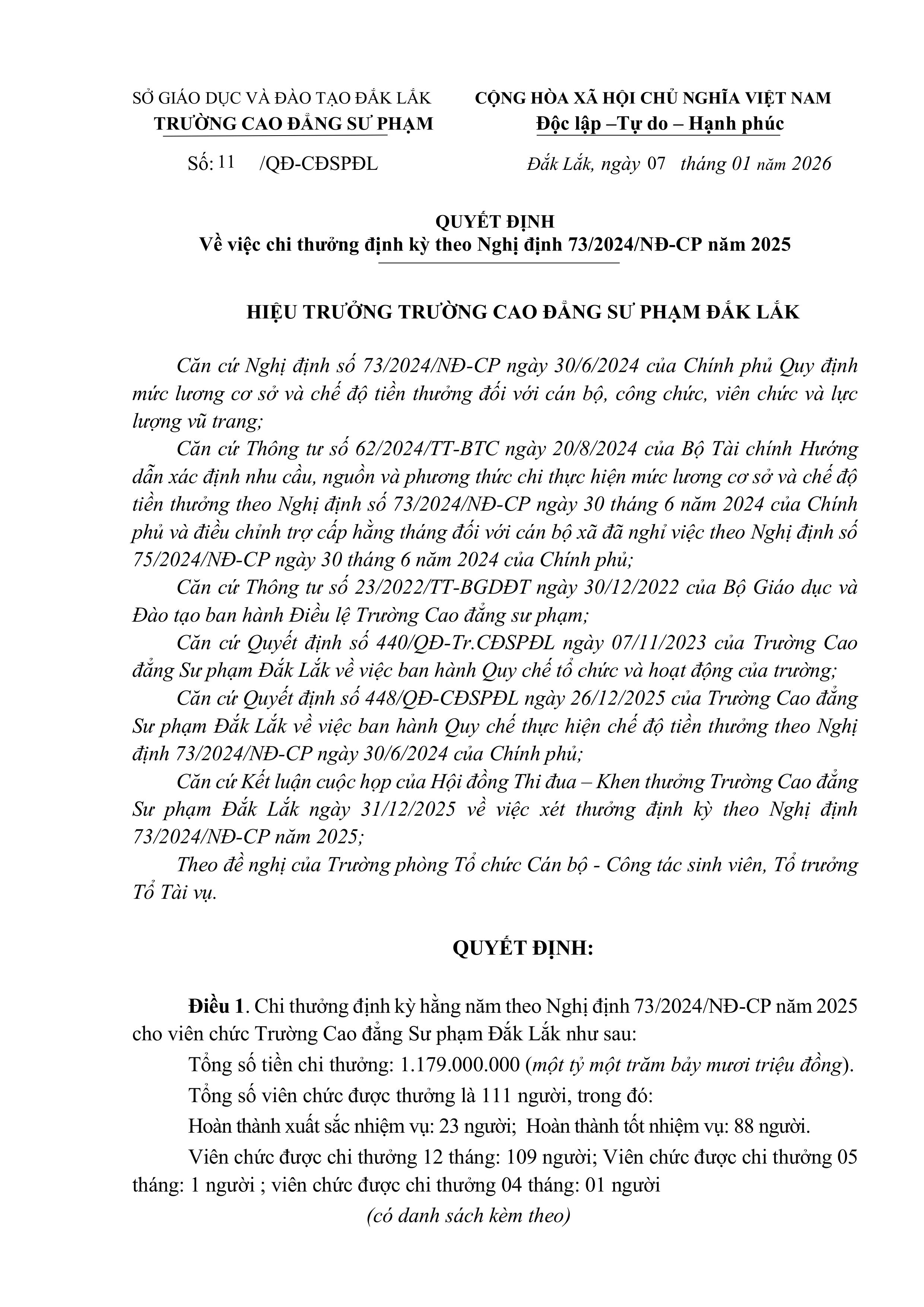 Quyết định về việc chi thưởng định kỳ theo Nghị định 71/2024/NĐ-CP năm 2025
