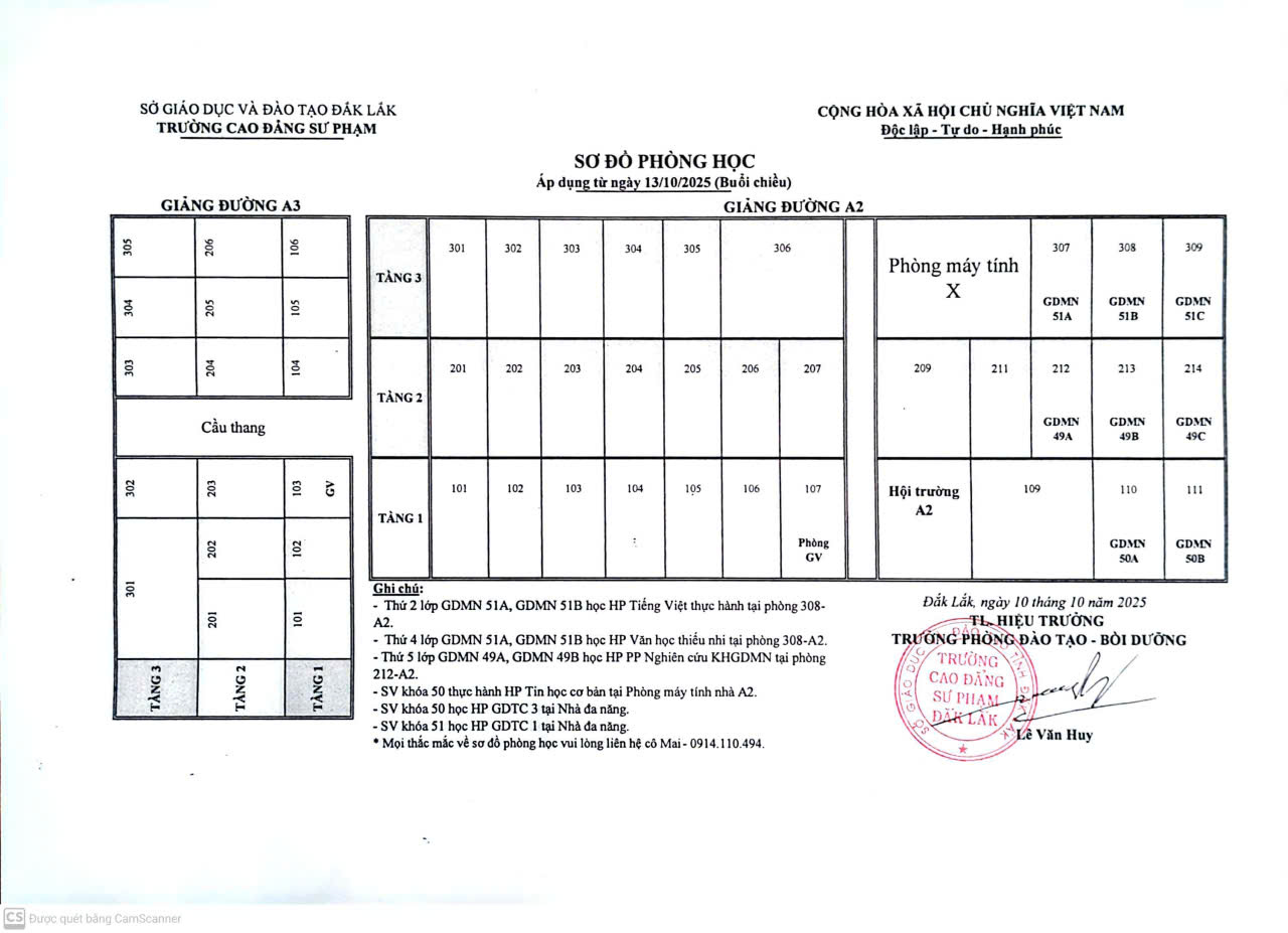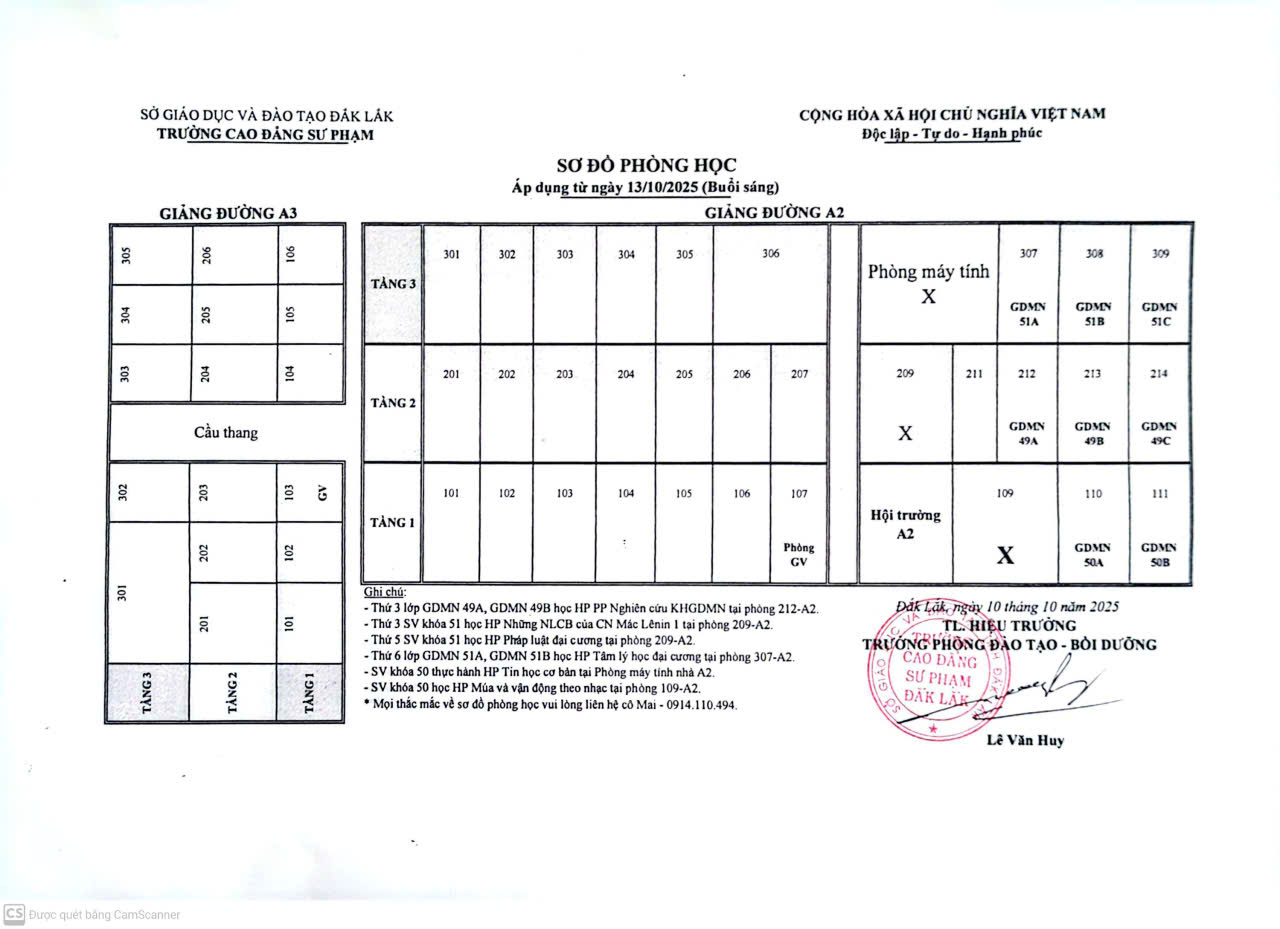 Sơ đồ phòng học (áp dụng từ ngày 13/10/2025)