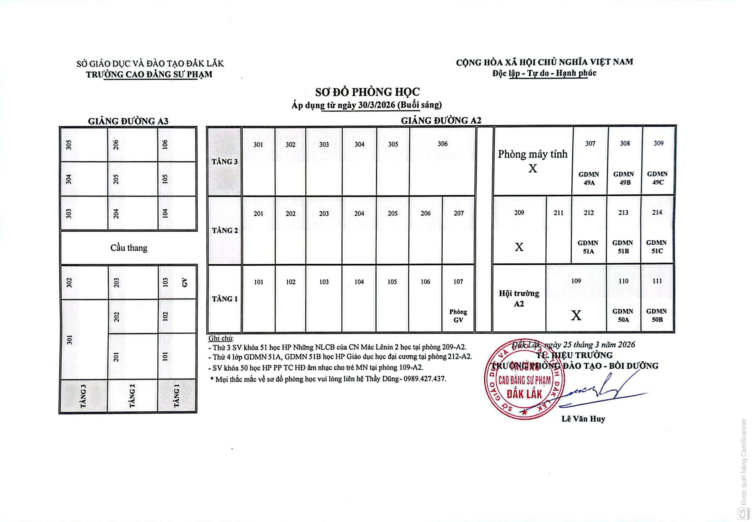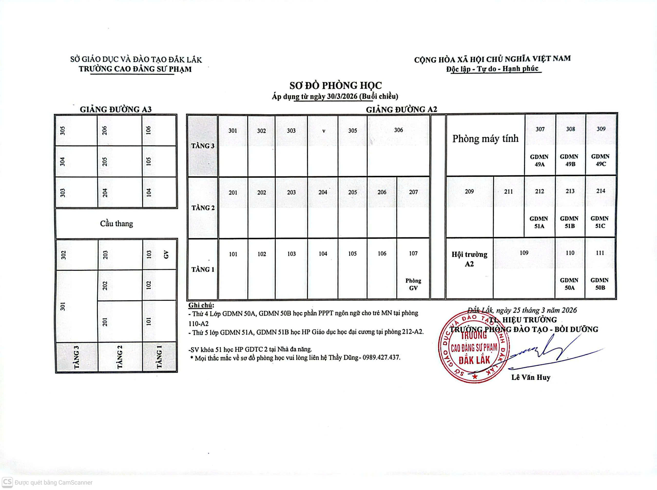 Sơ đồ phòng học (Áp dụng từ ngày 30/3/2026)