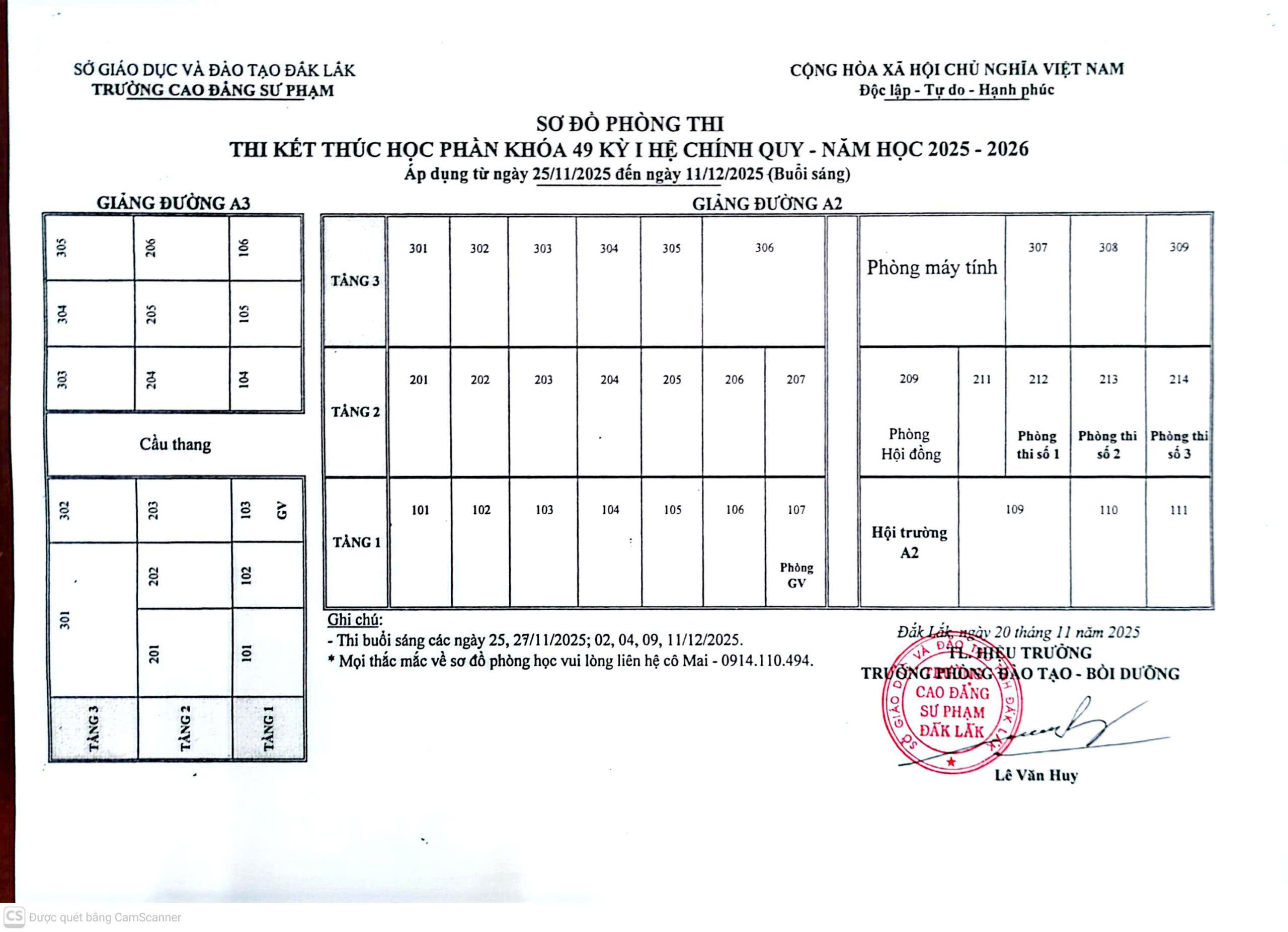 Sơ đồ phòng thi, thi kết thúc học phần khóa 49 kỳ I hệ chính quy - năm học 2025 - 2026 (áp dụng từ ngày 25/11/2025 đến ngày 11/12/2025)