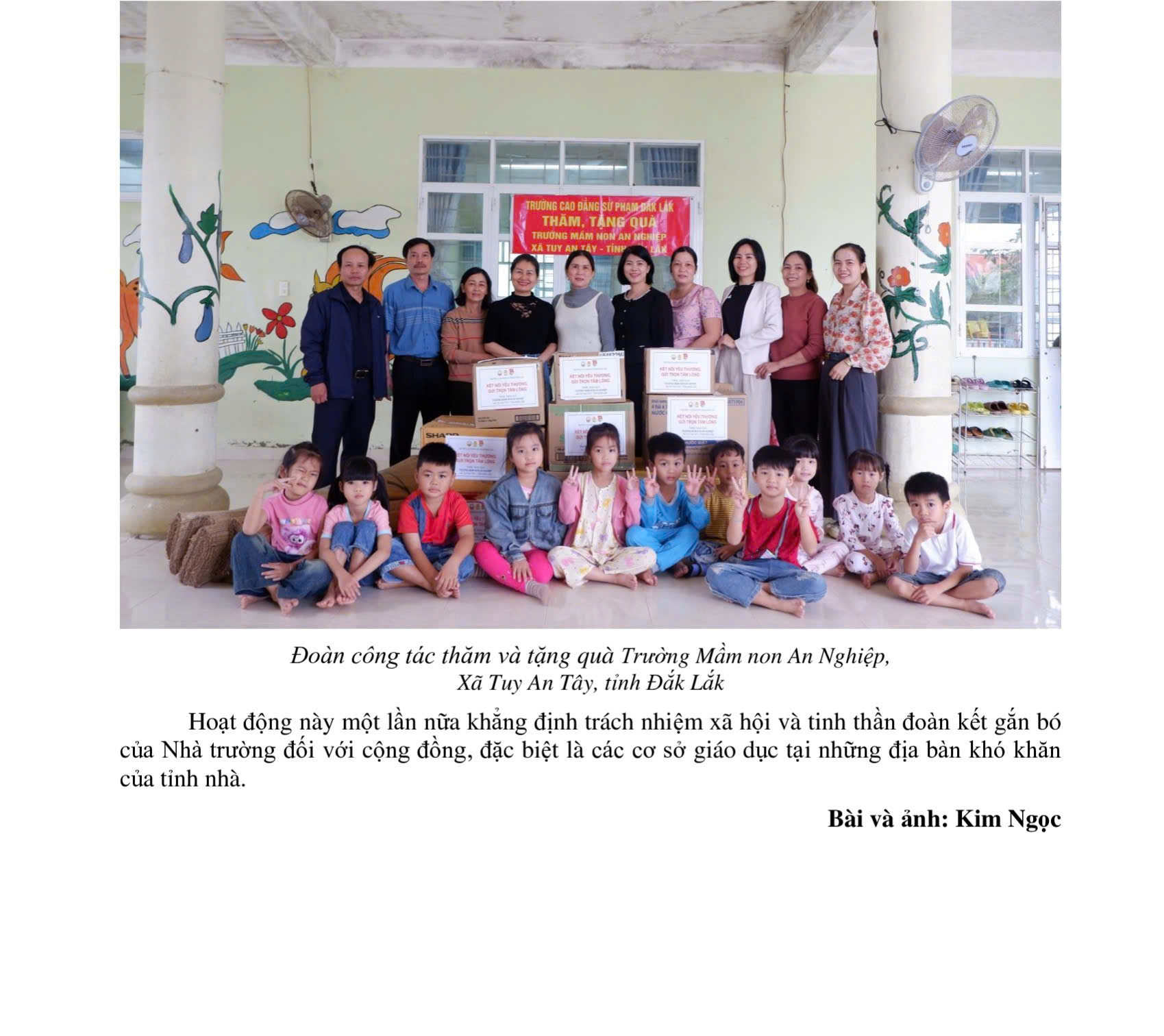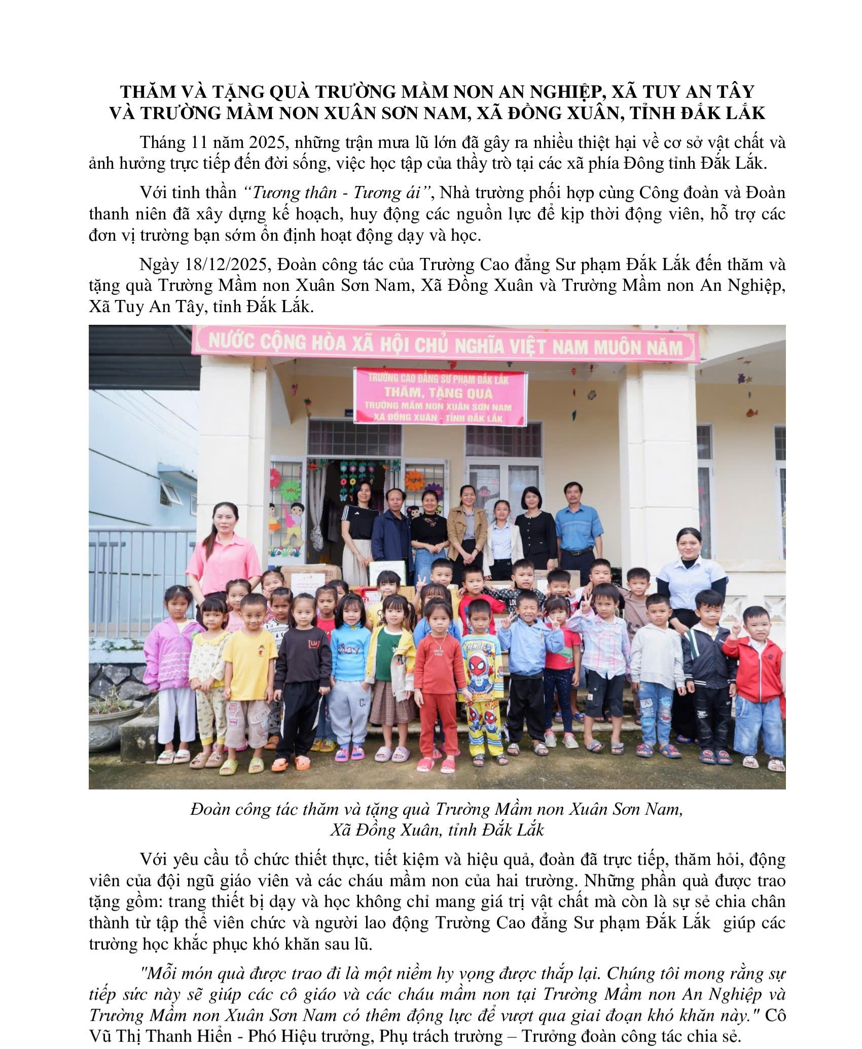 Thăm và tặng quà trường Mầm non An Nghiệp, xã Tuy An Tây và trường Mầm non Xuân Sơn Nam, xã Đồng Xuân tỉnh Đắk Lắk