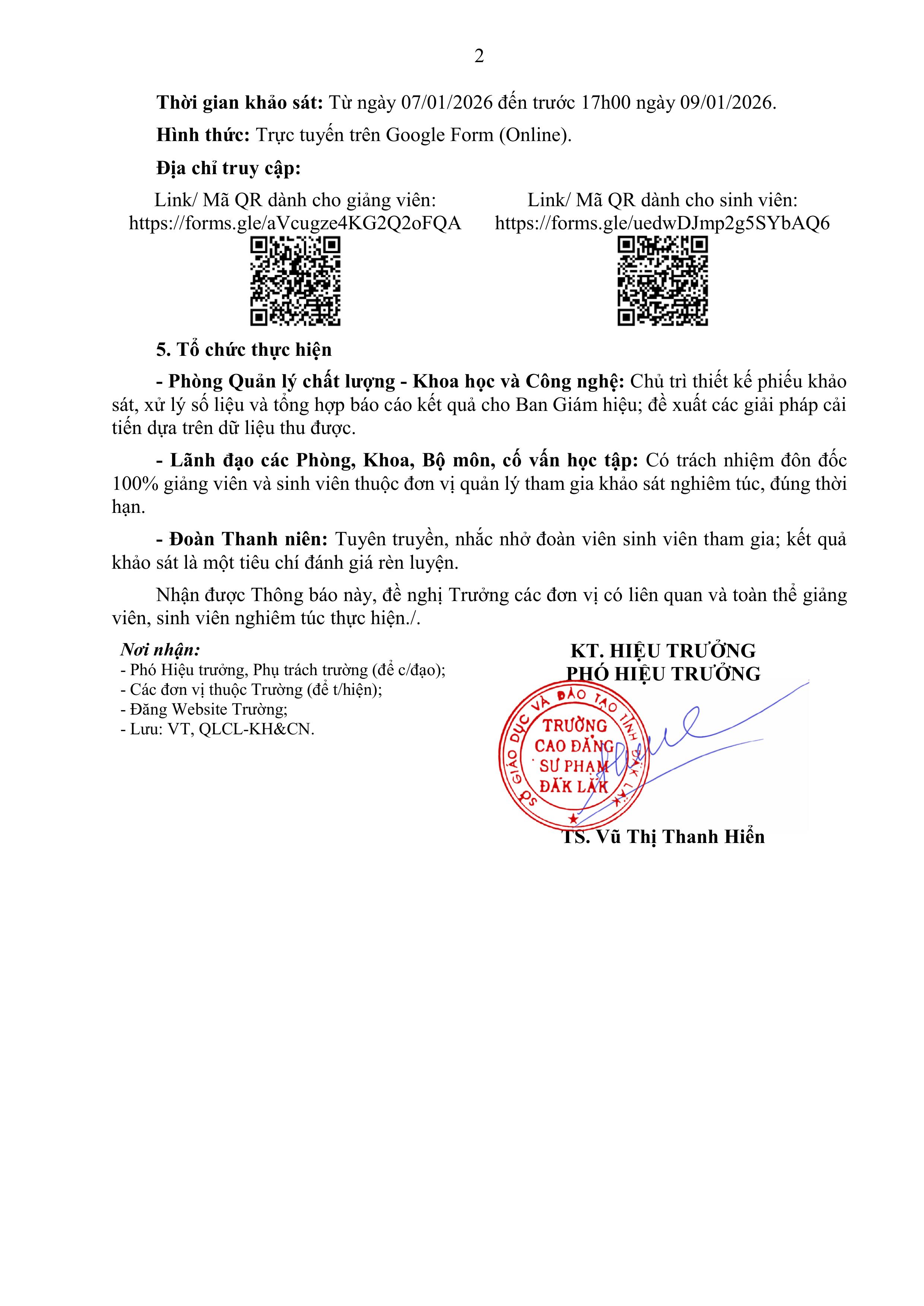 Thông báo về việc khảo sát, đánh giá kết quả tích hợp Khung năng lực số giảng viên và người học học kỳ I , năm học 2025 - 2026