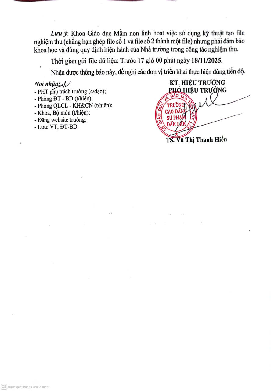 Thông báo về việc báo cáo kết quả thực hiện Kế hoạch số 27/KH-CĐSPĐL ngày 28/8/2025 của trường Cao đẳng Sư phạm Đắk Lắk