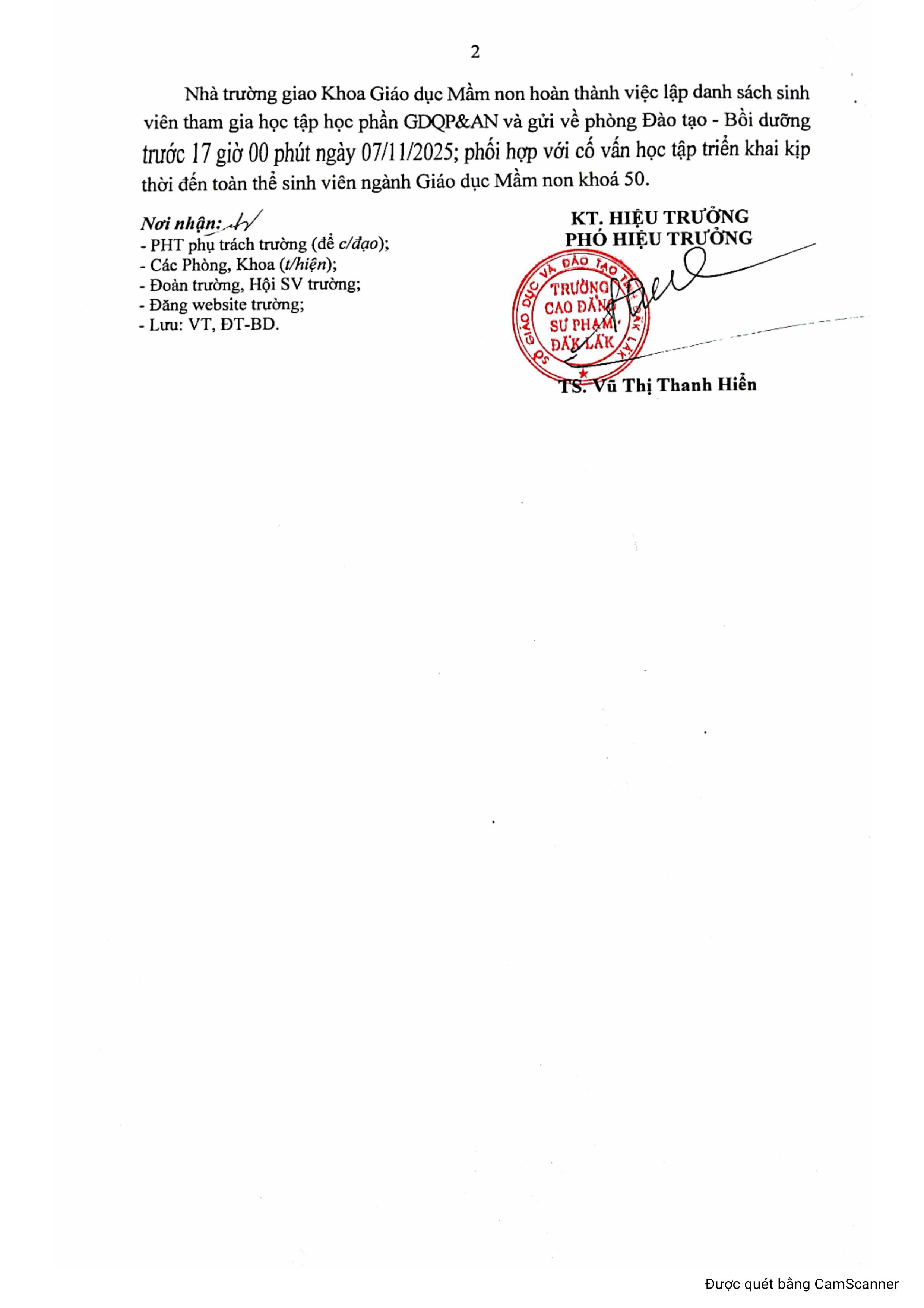Thông báo về việc tổ chức lớp Giáo dục quốc phòng và An ninh cho sinh viên cao đẳng hệ chính quy khóa 50, năm học 2025 -...